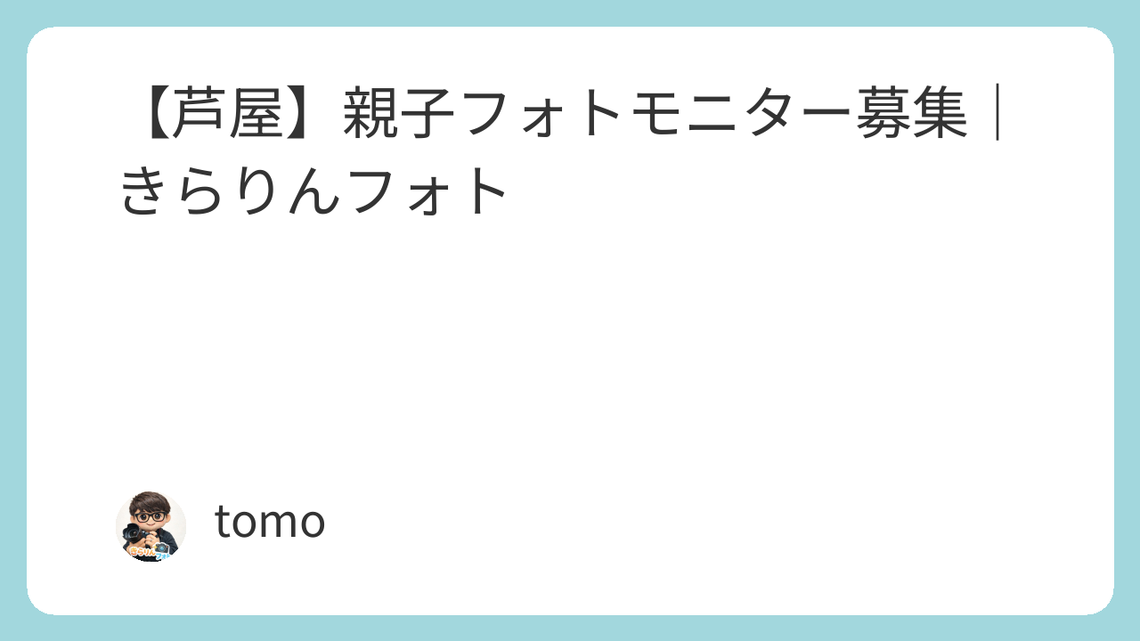 現在、芦屋エリアでの撮影実績を増やし、より多くのご家族とのご縁をつなぐため、期間限定で親子フォトモニター撮影を募集しています。