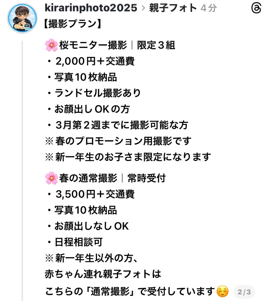 【スレッズ/インスタ投稿文(本募集用)】